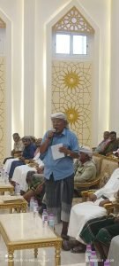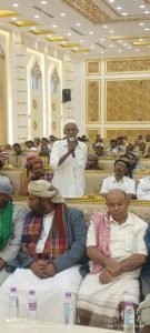 كما ألقيت كلمة من قبل إمام وخطيب مسجد جامع عمر بمدينة المكلا الشيخ صالح الشرفي، شدد خلالها على ضرورة لم الشمل وجمع الكلمة، مشيرا إلى أن حضرموت لا يمكن أن تختزل في شخص أو مكون أو حزب، وهي لجميع أبنائها، لافتا إلى أن سبب ضعف الحضارم اليوم يعود إلى تفرقهم، وحاثا الجميع على ضرورة استيعاب خطورة المرحلة الحالية وجمع الكلمة ونبذ الفرقة سيما وأن هناك استهدافا لحضرموت، وإن هناك مطالبا لتصحيح مسار حلف قبائلها، مجدداً التأكيد على الوقوف إلى جانب السلطة المحلية والإخوة في دول التحالف العربي الشقيق بقيادة المملكة العربية السعودية ودولة الامارات العربية المتحدة.