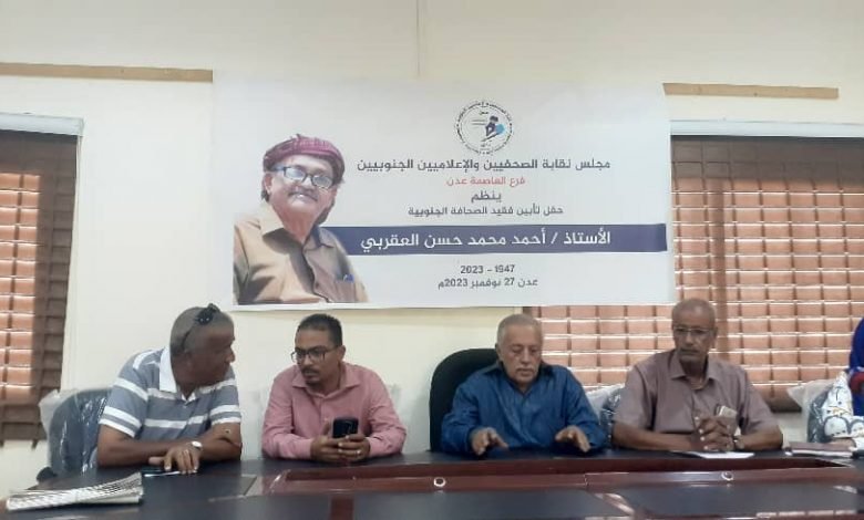 نقابة الصحفيين والإعلاميين الجنوبيين بالعاصمة عدن تنظم حفل تأبيني لفقيد الصحافة أ. أحمد العقربي.