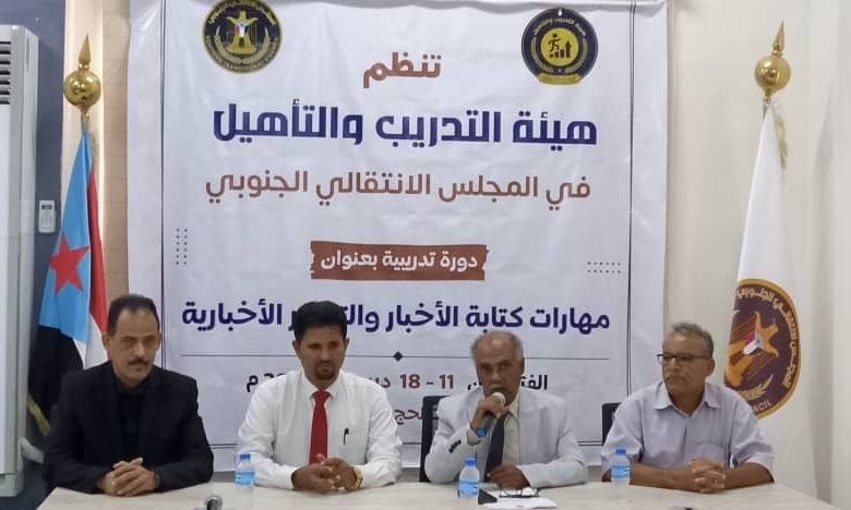 التحق صباح اليوم الاربعاء صحفيو وإعلاميو فرع نقابة الصحفيين والإعلاميين الجنوبيين أبين بدورة مهارات كتابة الأخبار والتقارير الأخبارية التي تنظمها هيئة التدريب والتأهيل في المجلس الانتقالي الجنوبي بمقرها في مدينة التواهي بالعاصمة عدن ، بالتنسيق مع نقابة الصحفيين والإعلاميين الجنوبيين والتي تستهدف تدريب 45 صحفيا وإعلاميا من محافظات ” عدن – لحج – أبين – الضالع ” في الفترة من 11 – 18 من ديسمبر الجاري،