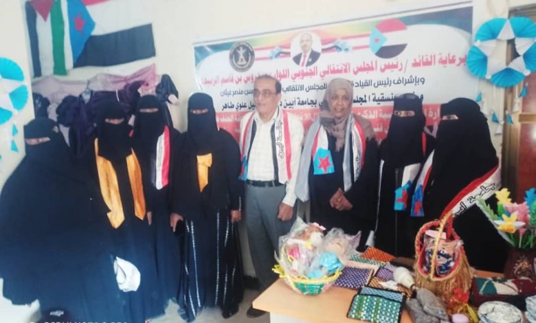 إدارة المرأة بمنسقية الانتقالي بجامعة أبين تنظم معرضاً فنياً للتراث الشعبي والأشغال اليدوية