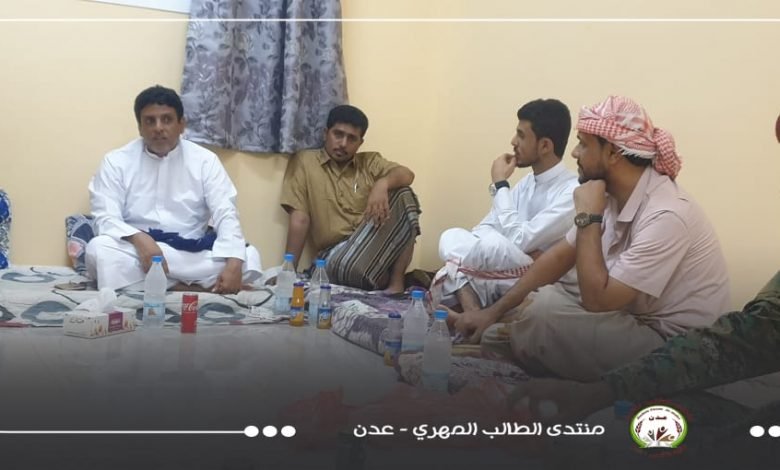 حيث رحب الأستاذ أمين شنجل بلحاف – رئيس منتدى الطالب المهري في العاصمة عدن بالشيخ باكريت ، معبراً عن امتنانه واللفتة الطيبة التي قام بها تجاه أبناءه الطلاب وحرصه الشديد على مصلحتهم ومتابعة اخبارهم ،شاكراً له الدعم اللا متناهي من قبله.