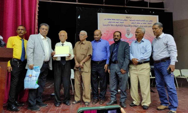 صندوق التراث والتنمية الثقافية ينظم حفلا تكريميا للشاعر الغنائي الكبير “عبدالله عبدالكريم” بالعاصمة عدن