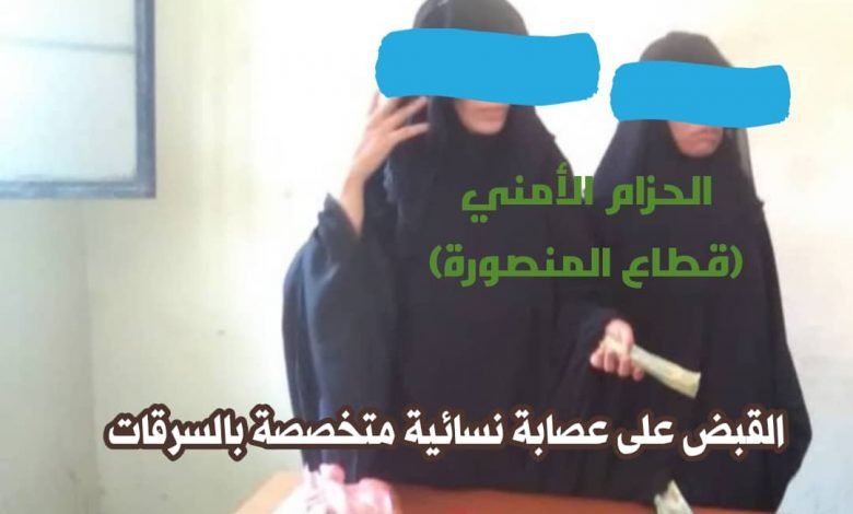 الحزام الأمني (قطاع المنصورة) بقيادة القائد كمال الحالمي يكشف عن عصابة نسائية متخصصة بالسرقات
