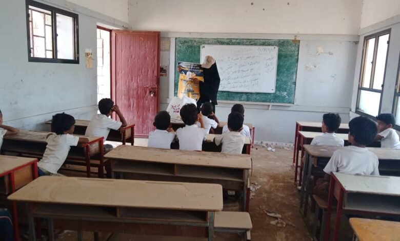 فريق التثقيف الصحي بأحور يواصل النزول إلى المدارس لتوعية الطلاب والطالبات من مخاطر الكوليرا