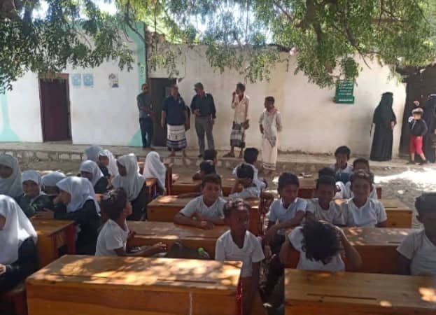انتقالي خنفر والسلطة المحلية يطلعان على الأضرار التي لحقت بمدرسة عمر بن عبدالعزيز