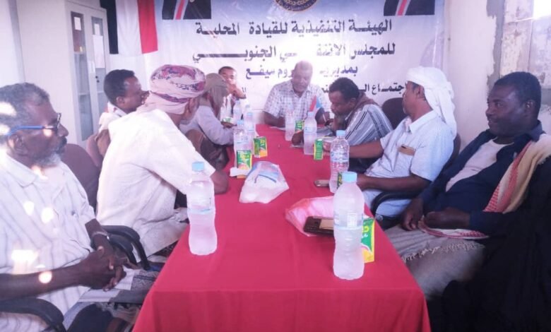 عقدت الهيئة التنفيذية للقيادة المحلية للمجلس الانتقالي الجنوبي بمديرية بروم ميفع بمحافظة حضرموت ،عصر اليوم الثلاثاء بمقرها اجتماعها الدوري لشهر ابريل برئاسة الأخ ناصر التميمي رئيس الهيئة .