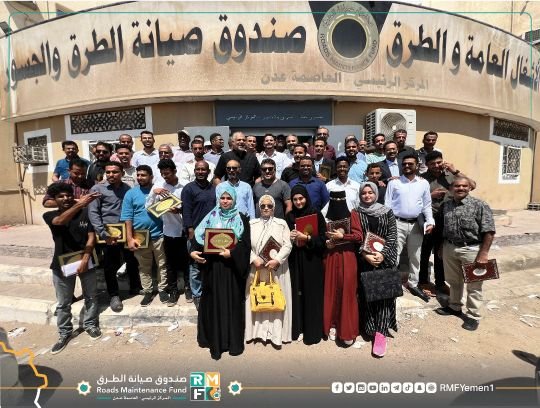 حضر الحفل مدراء عموم الإدارات في صندوق صيانة الطرق والجسور المركز الرئيسي-العاصمة عدن.