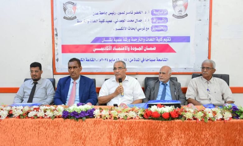 كلية اللغات والترجمة تقيم ورشة علمية بشأن ضمان الجودة والاعتماد الأكاديمي بالعاصمة عدن