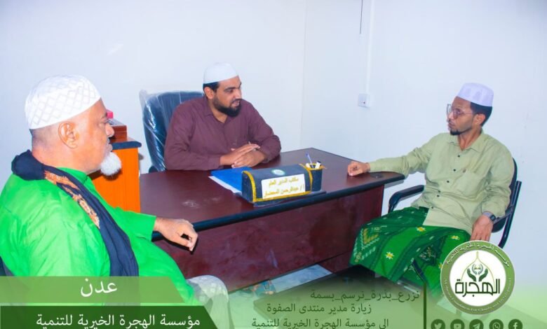 رئيس مؤسسة الهجرة الخيرية للتنمية يستقبل مدير منتدى الصفوة بمقر المؤسسة بالعاصمة عدن