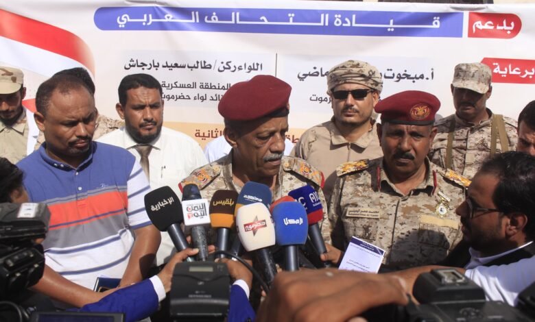 وخلال التدشين أشاد اللواء الركن “بارجاش” بالمخيم الطبي الذي سيُسهم في رفع معاناة الكثير من المرضى العسكريين، مؤكداً أهمية إقامة مثل هذه المخيمات الطبية بالمحافظة. مثمناً الدعم الكبير والمستمر من الأشقاء في التحالف العربي ومواقفهم الأخوية الصادقة إلى جانب إخوانهم اليمنيين ومساندتهم لهم في هذه المرحلة الاستثنائية والحرجة.كما شكر معالي وزير الدفاع الفريق الركن /محسن محمد الداعري الذي يولي اهتماماً خاصاً بالمستشفى العسكري لتقديم كل خدمات الرعاية الصحية للعسكريين وذويهم وأسر الشهداء .
