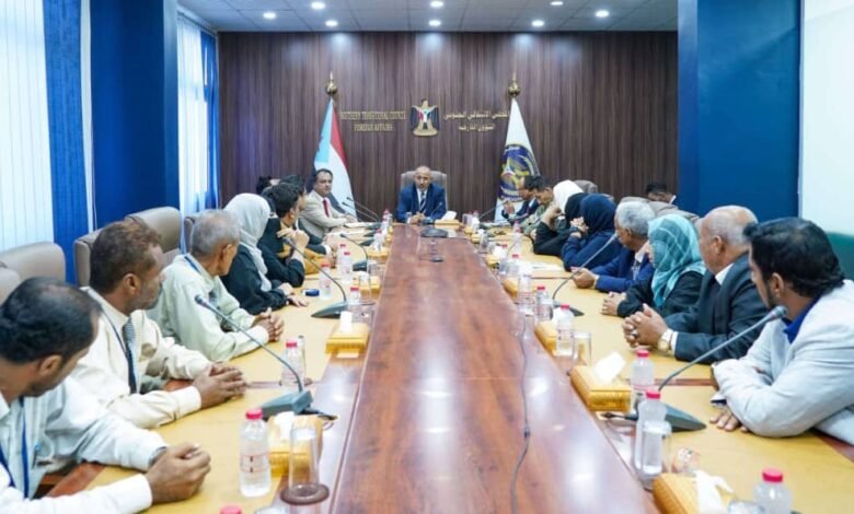 حضر اللقاء العميد طيار ناصر السعدي رئيس الهيئة المجتمعية المساعدة لهيئة الرئاسة، وعماد محمد مدير مكتب نائب رئيس مجلس القيادة الرئاسي