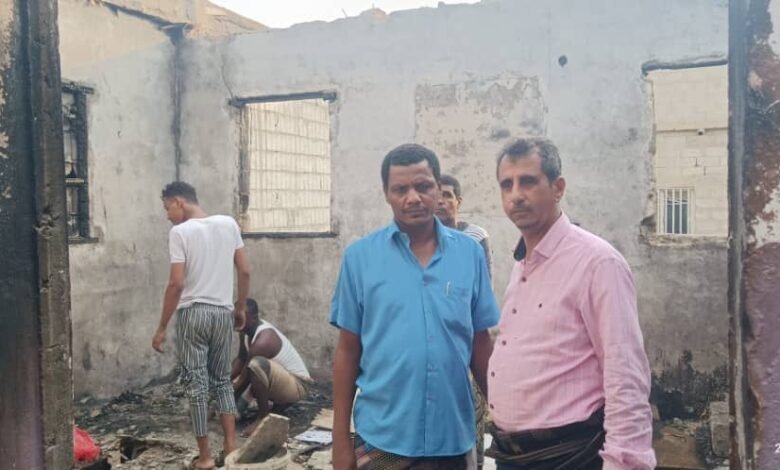 مدير إدارة الشباب والرياضة بانتقالي أبين يطلع على أضرار الحريق الذي تعرض له منزل الكابتن كردي