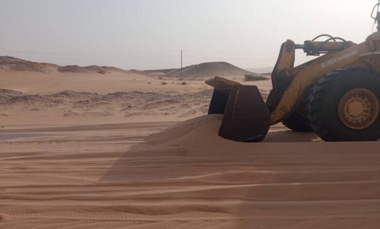 تواصل إزالة الرمال من الخط الدولي الساحلي برضوم شبوة