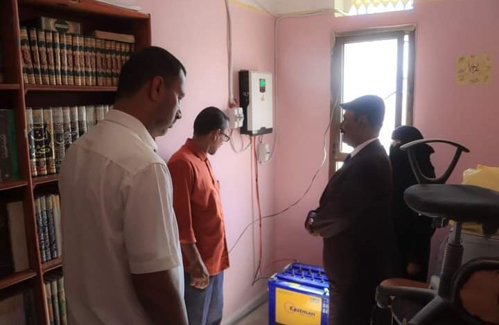 رئيس انتقالي شبوة يتفقد عملية تركيب منظومة الطاقة الشمسية المقدمة لمدرسة أروى للتعليم الأساسي بعتق
