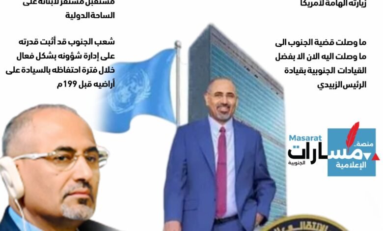 وقالوا: “حضور الرئيس الزُبيدي، اجتماعات الجمعية العامة للأمم المتحدة في دورتها الـ (79)، وزيارته إلى أمريكا، تعتبر فرصة استراتيجية لتعزيز قضية شعب الجنوب على الساحة الدولية والعالمية، بهدف كسب دعم سياسي ودبلوماسي واسع، كما انه يعد جزء لا يتجزأ من استراتيجية جنوبية مُتعددة الأبعاد، لتعزيز قضية شعب الجنوب دوليًا، وعالميًا”.
