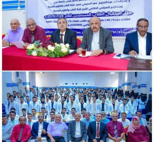 كلية الطب بجامعة عدن تنظم حفلاً لاستقبال الطلاب المستجدين للعام الجامعي الجديد