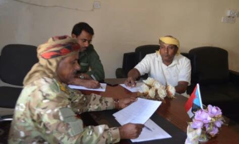الاجتماع التي ضم فيه مستشار رئيس المجلس الانتقالي الجنوبي بالمحافظة لشؤون الأمن والشرطة العقيد صالح يسلم فارس ونائب مدير عام الشرطة العقيد ركن محمد عبدالله علي وأركان حرب قوات الحزام الأمني العقيد ركن علي محمد الدكسمي وقائد قوات الأمن الخاصة العقيد ركن محمد مرشد