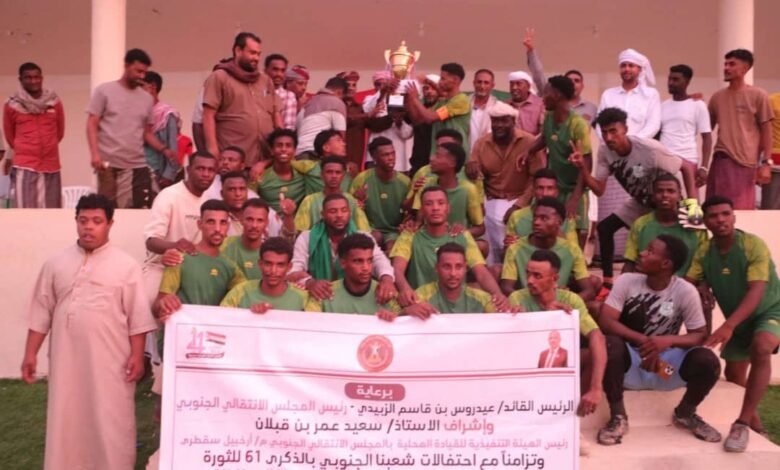 انتقالي سقطرى يتوج نادي الوحدة بكأس ثورة 14 أكتوبر