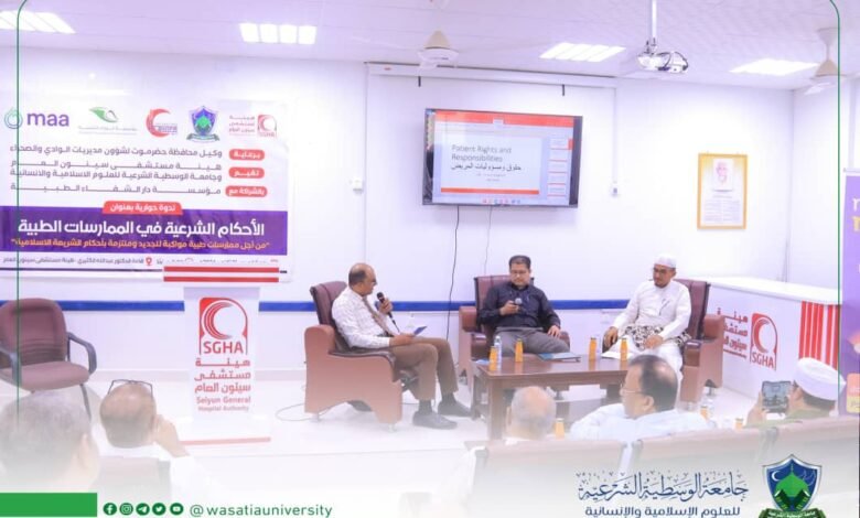 جامعة الوسطية الشرعية وهيئة مستشفى سيئون العام تقيمان ندوة علمية حول الأحكام الشرعية في الممارسات الطبية