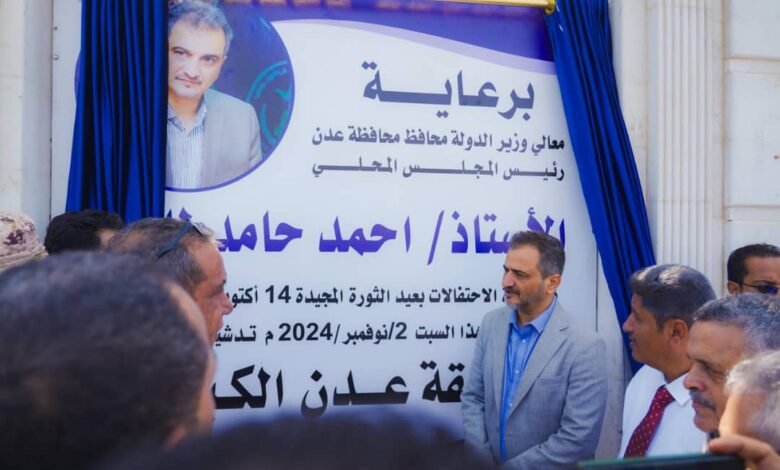 دشّن وزير الدولة، محافظ العاصمة عدن، أحمد حامد لملس، اليوم السبت، في مديرية خورمكسر، مشروع حديقة عدن الكبرى، بمناسبة الذكرى الـ61 لثورة 14 أكتوبر المجيدة.
