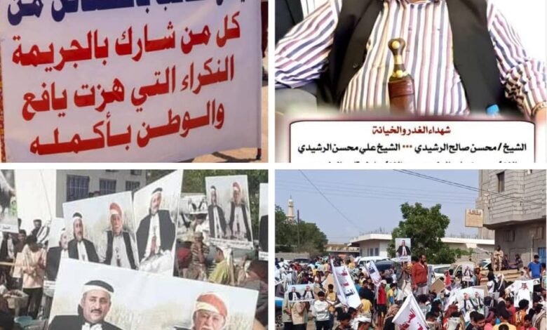 وكان الشهداء المغدورين رجل الأعمال الشيخ/ محسن صالح الرشيدي ونجله رجل الأعمال/ علي محسن الرشيدي من أبرز الشخصيات البارزة في دعم المشاريع الخيرية والتنموية في معظم المناطق الفقيرة ولاتزال بصماتهم شاهدة على خيرهم وعطائهم وبشهادة الجميع، لكن دعاة الشر والعصابات الإجرامية ضنت أنها ستنهي مسيرة الخير والعطاء لهذه الأسرة العريقة ،إلا أن هذه الأسرة لايزال خيرها باقيا للجميع وعطائها حاضراً لكل المحتاجين والبسطاء، وان هذه الأسرة تؤكد أنها تمضي وفق كرم الشهداء وعطائهم، وانها اختارت القضاء لتنفيذ حكم الله بحق كل المجرمين القتلة.