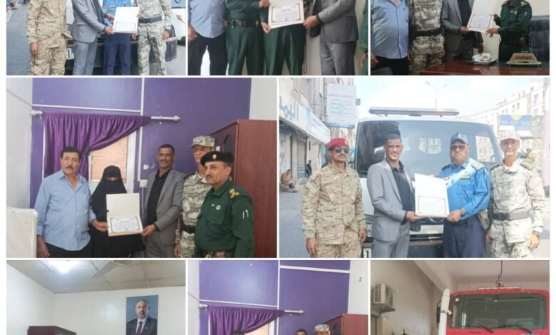 قيادة اللجان المجتمعية بالمعلا تكرم قيادة شرطة المعلا وأفراد وضباط إدارة الدفاع المدني وشرطة السير بالمديرية.