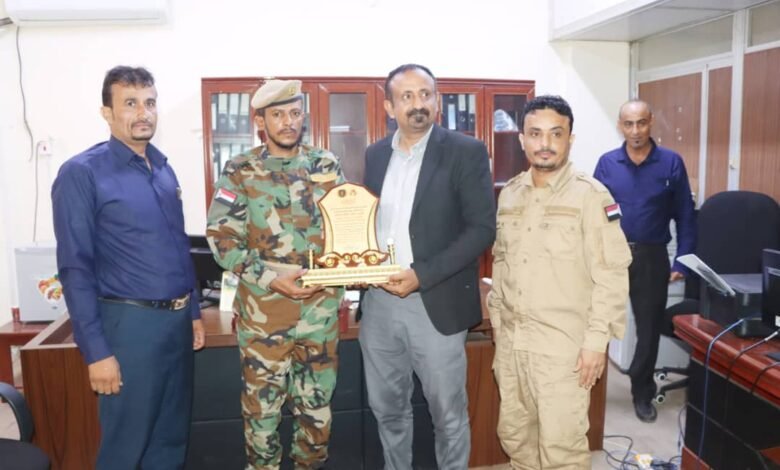 قيادة اللواء الأول دعم أمني تكرم وكيل عدن لشؤون الشهداء والجرحى تقديرًا لجهوده الوطنية والإنسانية