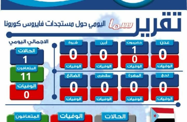 فيما سجلت (11) حالة شفاء منها 10 حالات في حضرموت و واحدة في شبوة