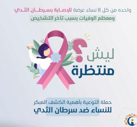 وتحت حملة “ليش منتظرة” النساء للقيام بالكشف المبكر عن سرطان الثدي.