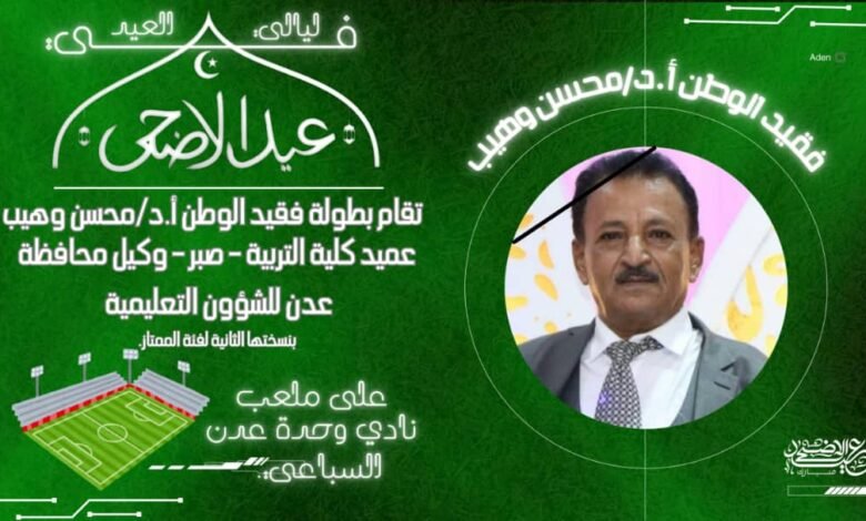 تشهد مديرية الشيخ عثمان بالعاصمة عدن خلال ليالي عيد الأضحى المبارك بطولة كروية للفرق الشعبية تحمل اسم فقيد الوطن البروفيسور