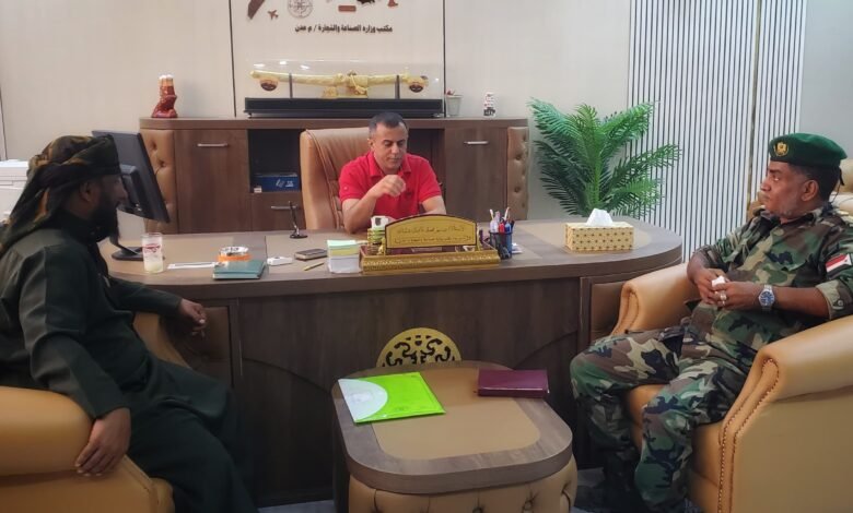 تعزيز التنسيق والتعاون المشترك بين صناعة وتجارة عدن وقوات الحزام الأمني