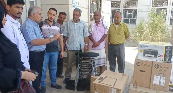 مدير عام البريقة يتسلم أثاث وأجهزة لمكتب الصناعة والتجارة بالمديرية