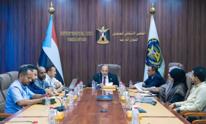وتناول الاجتماع عددًا من الملفات المدرجة على جدول أعماله، والمتعلقة بالتحركات الخارجية، وسبل تطوير آليات العمل الدبلوماسي بما يعكس تطلعات شعب الجنوب وقضيته العادلة، إضافة إلى توحيد الرسائل السياسية في ضوء المتغيرات المحلية والإقليمية الراهنة.