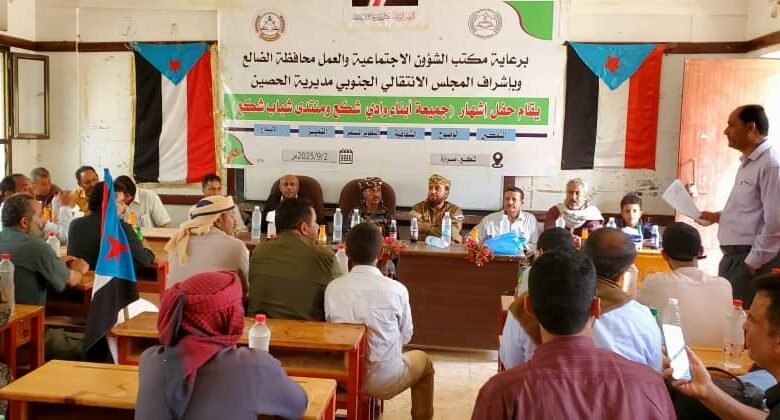 برعاية مكتب الشؤون الاجتماعية والعمل بمحافظة الضالع، وإشراف المجلس الانتقالي الجنوبي والسلطة المحلية بمديرية الحصين، شهدت منطقة شكع صباح اليوم حدث استثنائي تمثل في حفل إشهار جمعية أبناء شكع الخيرية ومنتدى شباب شكع وسط حضور كبير من القيادات السياسية والعسكرية والاجتماعية
