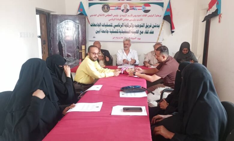 فريق التوجيه والرقابة الرئاسي يعقد لقاءات موسعة مع منسقيات كليات جامعة أبين.