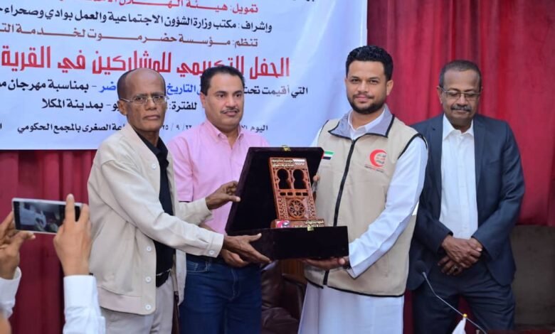 مؤسسة حضرموت لخدمة التراث تكرّم السلطة المحلية والهلال الأحمر الإماراتي والمشاركين في القرية التراثية