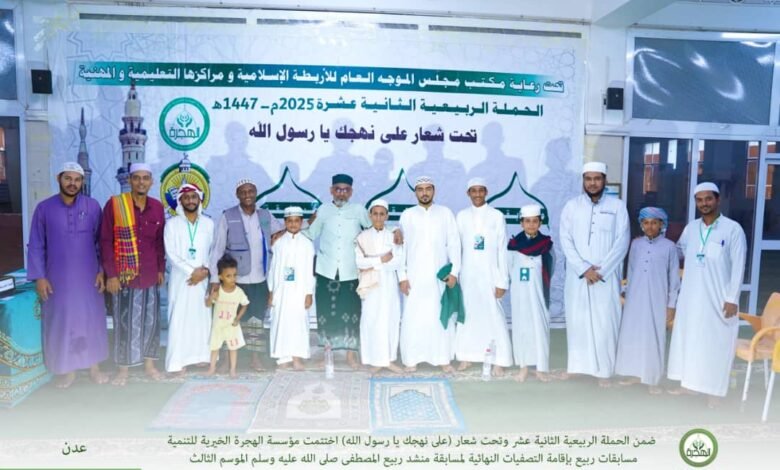 في أجواء روحانية يعبق فيها عبير المحبة لخير الأنام ﷺ، وتحت رعاية مكتب الموجه العام لأربطة التربية الإسلامية ومراكزها التعليمية والمهنية وتحت شعار “على نهجك يا رسول الله”، اختتمت مسابقات شهر ربيع المبارك بإقامة التصفيات النهائية لمسابقة منشد ربيع المصطفى صلى الله عليه وسلم، وذلك يوم الخميس ٢٥ سبتمبر ٢٠٢٥م، الموافق ٣ ربيع ثاني ١٤٤٧هـ، في رحاب جامع الهجرة بمديرية المنصورة، ضمن أنشطة الحملة الربيعية الثانية عشر.