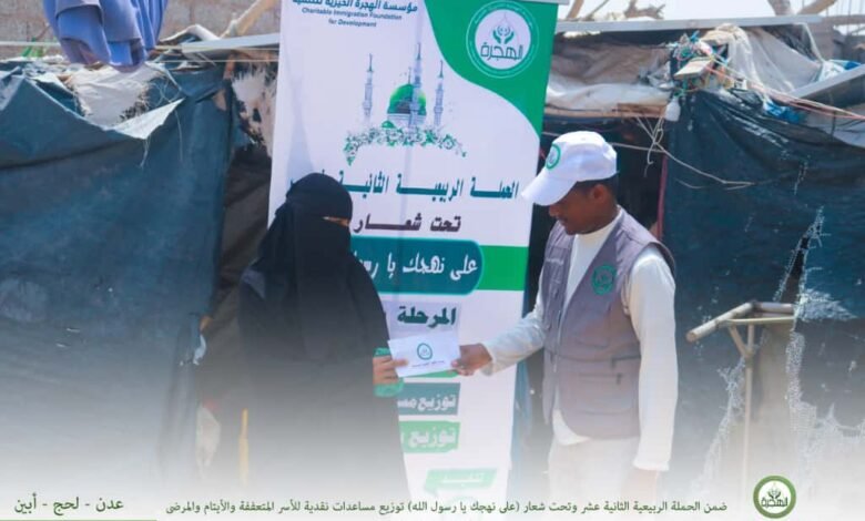 مؤسسة الهجرة توزّع المساعدات النقدية للأسر المتعففة والأيتام والمرضى بالعاصمة عدن