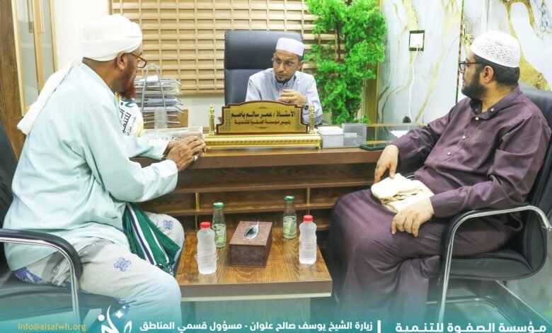 مسؤول بدار المصطفى للدراسات الإسلامية بتريم يزور مؤسسة الصفوة بالعاصمة عدن