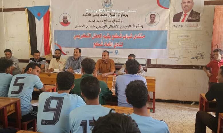 برعاية كريمة من الشيخ محمد يحيى الفقيه والشيخ صالح محمد أحمد، وبإشراف من المجلس الانتقالي الجنوبي بمديرية الحصين أقام منتدى شباب شكع الحفل التكريمي الكبير لتكريم نادي اتحاد شكع الرياضي بطل دوري مديرية الحصين الذي أُقيم مؤخرا في منطقة خله وسط حضور رسمي وجماهيري واسع.