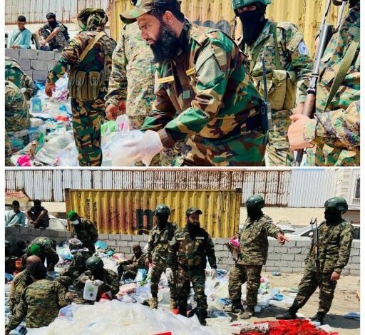 بتوجيهات النائب العام، القاضي قاهر مصطفى علي، أتلفت النيابة الجزائية المتخصصة، اليوم الخميس، كميات كبيرة من المخدرات ضبطتها قوات الحملة الأمنية المشتركة في سواحل مديرية المضاربة ورأس العارة بمحافظة لحج، بالقرب من باب المندب.