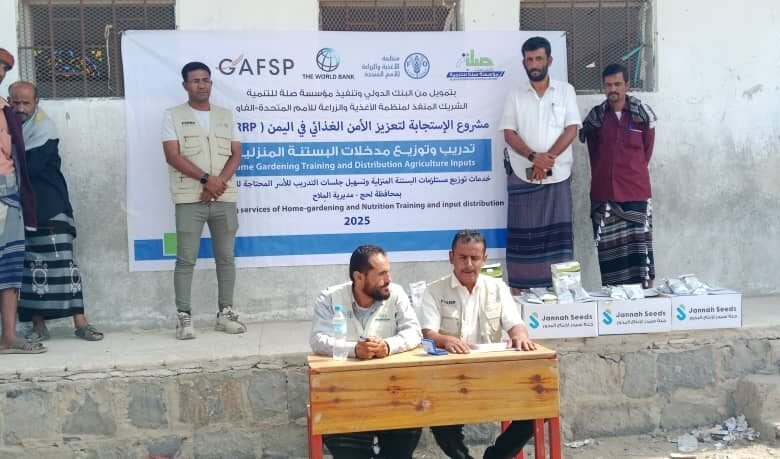 دشن عنتر علي سالم المغربي، مدير عام مديرية الملاح محافظة لحج، مشروع تدريب وتوزيع مدخلات البستنه المنزلية المنفذ من قبل مؤسسة صله للتنمية الشريك المنفذ لمنظمة الأغذية والزراعة للأمم المتحدة “الفاو”، بتمويل من البنك الدولي.