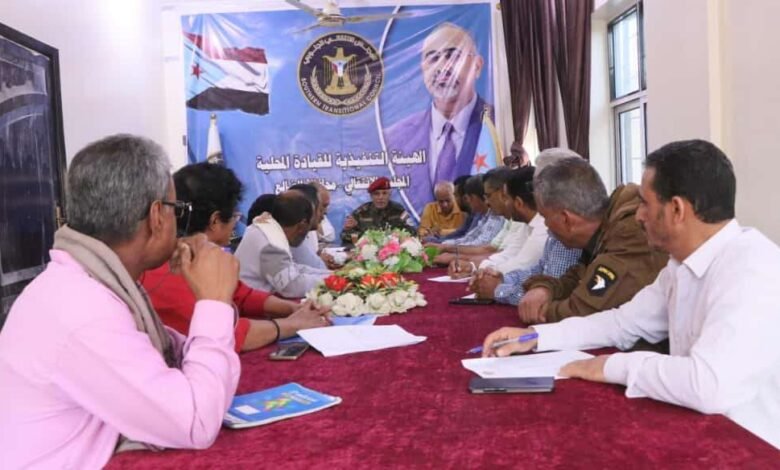 واستعرض العميد مهدي التطورات السياسية والعسكرية والاقتصادية، والأوضاع الخدمية والمعيشية، مشدداً على أهمية وحدة الصف الجنوبي في مواجهة التحديات الراهنة، وتعزيز التنسيق بين مختلف مؤسسات المجلس والهيئات المحلية بالمحافظة والمديريات.