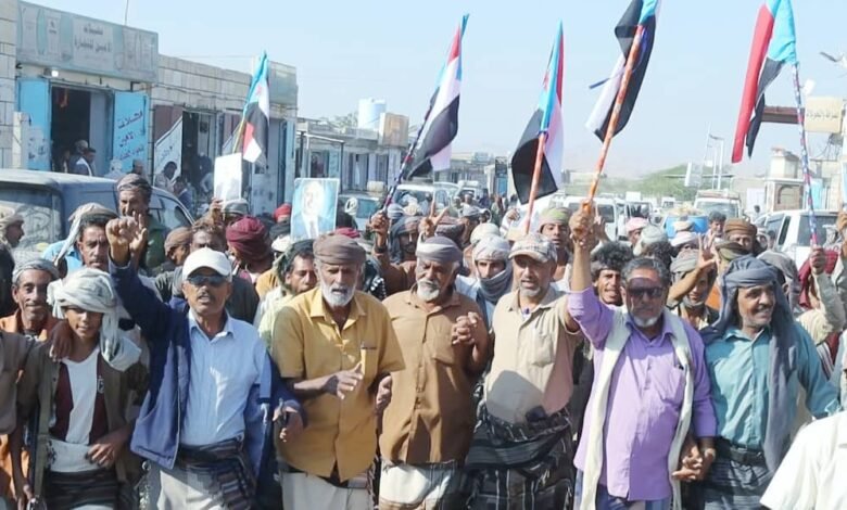 أبناء المحفد بأبين ينظّمون مسيرة جماهيرية تأييداً لتفويض القوات المسلحة الجنوبية في تحرير وادي حضرموت