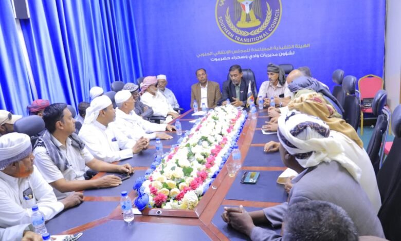 انتقالي وادي وصحراء حضرموت يبحث مع عقال الحارات تعزيز التعاون المجتمعي ودعم الجهود الأمنية
