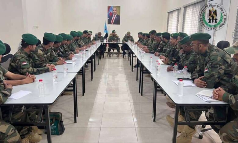 العميد الربيعي يترأس اجتماعًا بقيادات حزام العاصمة عدن ويشدّد على رفع الجاهزية واستدعاء كافة القوة
