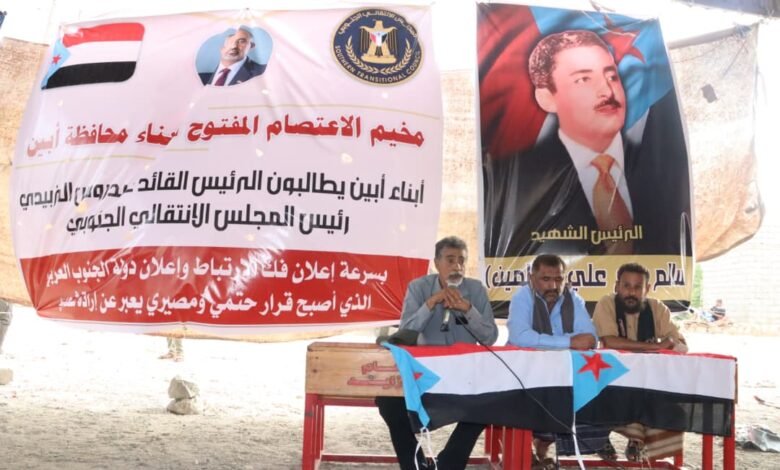 أبين.. حشود جماهيرية في مخيم الاعتصام المفتوح تطالب بإعلان دولة الجنوب العربي