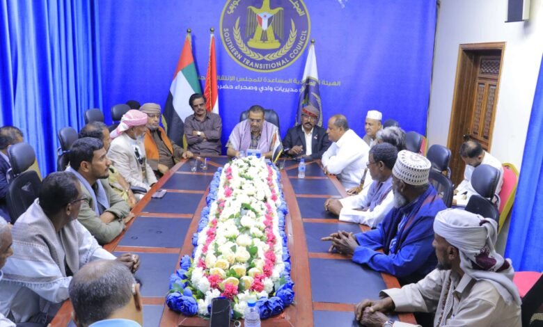 انتقالي وادي وصحراء حضرموت يناقش مع مجلس المستشارين عددًا من القضايا الأمنية والمجتمعية