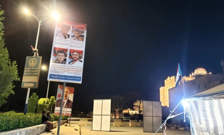 رفع صور شهداء عملية «المستقبل الواعد» في ساحة مخيم الاعتصام بسيئون وفاءً لتضحيات أبطال التحرير