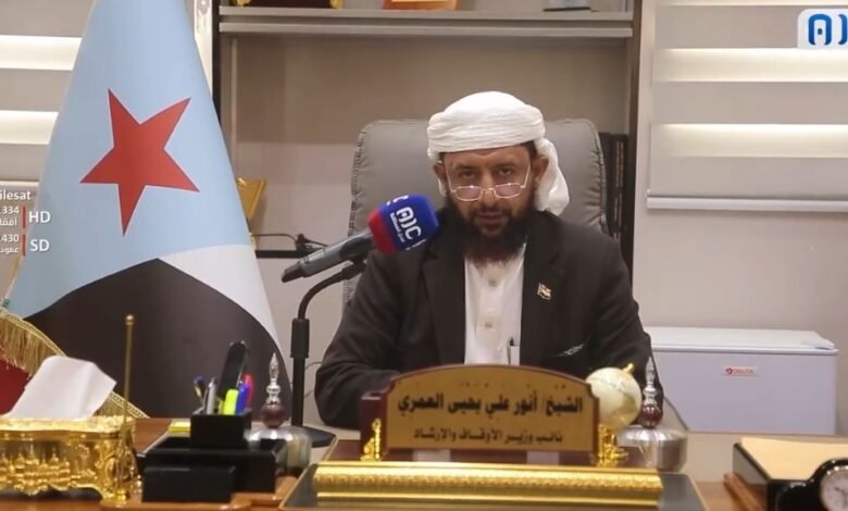 وزارة الأوقاف والإرشاد ممثلة بنائب الوزير الشيخ أنور العمري تعلن تأييدها المطلق لخطوات المجلس الانتقالي والقوات الجنوبية لإعلان دولة الجنوب العربي